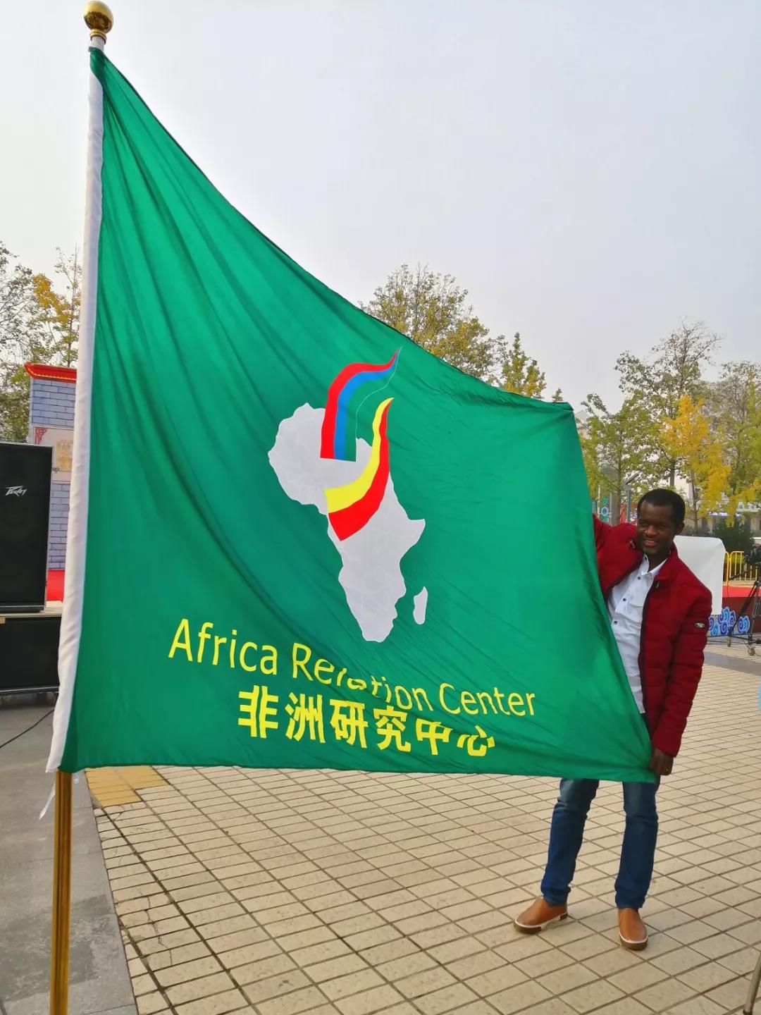 鉴宝活动期间,来自坦桑尼亚籍的学生BoscoSHIO在现场挥动旗帜为大家介绍非洲研究中心,与现场的观众积极合影留念。